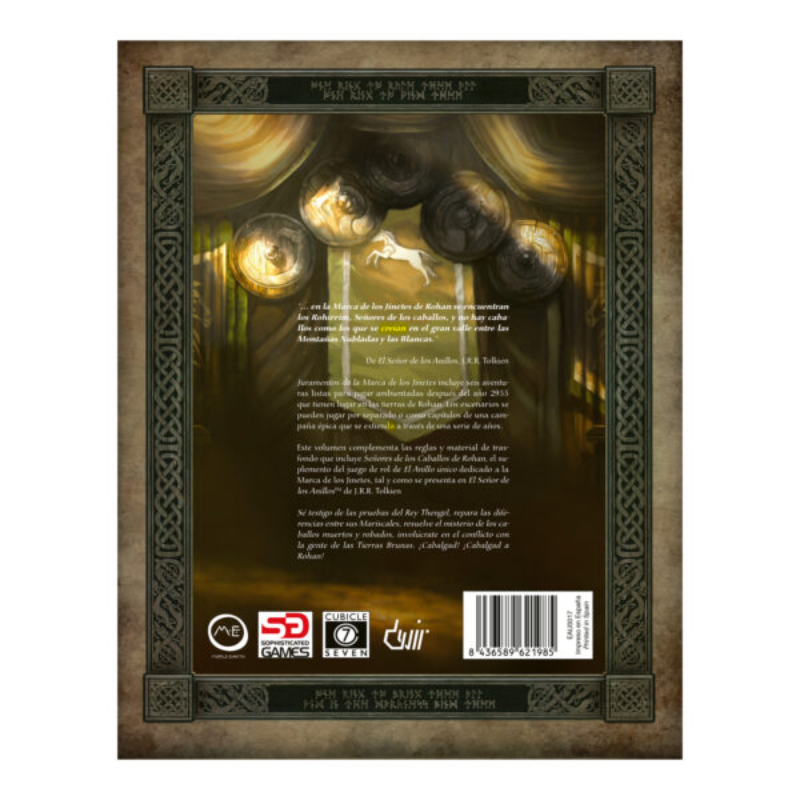 El anillo único: Juramentos de la Marca de los Jinetes es un suplemento de rol para El anillo único. Dentro de sus páginas encontrarás aventuras que llevarán a tu compañía de valientes aventureros a través de distintas dichas y desdichas por las tierras de Rohan, así como las pruebas a las que te someterá el Rey Thengel, padre de Theoden.