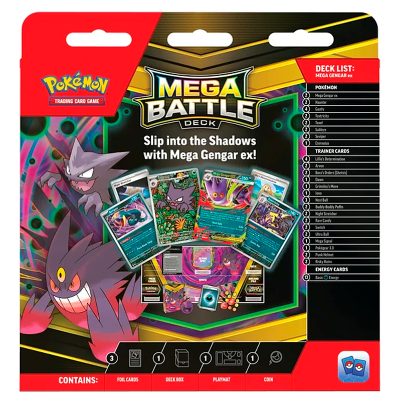 Entra en batalla con el enigmático Mega Gengar ex, que ataca desde las sombras con poder fantasmal, o deslumbra a tus oponentes con el brillo y elegancia de Mega Diancie ex, una joya entre los Pokémon.