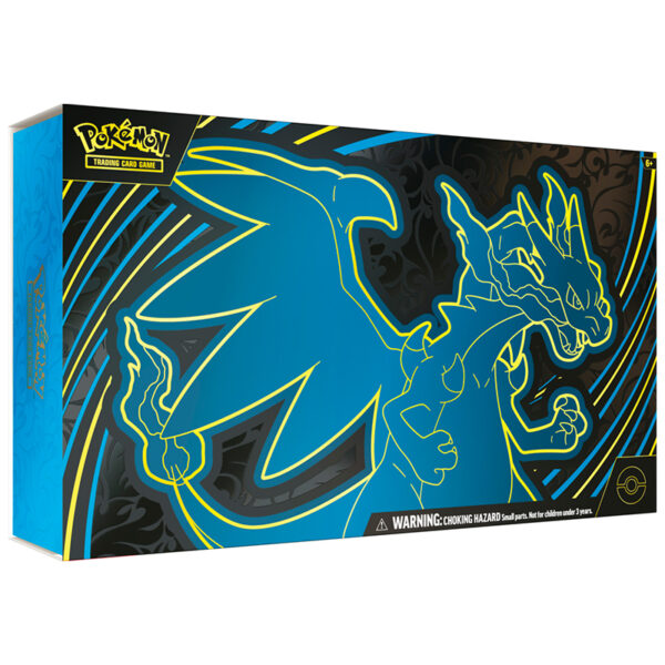 ¡El inmenso poder de la Megaevolución enciende las fulgurantes llamas azules de Mega-Charizard X ex! Este feroz Pokémon ex Megaevolución consume Energía Fuego para avivar su ataque Infierno X, aumentando su daño con cada carta que descartes. Mega-Charizard X ex llega en forma de carta promo holográfica junto a Oricorio ex, también como carta promo holográfica, que te ayudará a poner más Energía Fuego en juego. Encontrarás muchos más Pokémon dentro del montón de sobres de refuerzo, y te destacarás en el combate gracias a los accesorios, entre ellos 1 tapete, 1 portamazo y fundas para cartas con la intensa ilustración de Mega-Charizard X en acción.