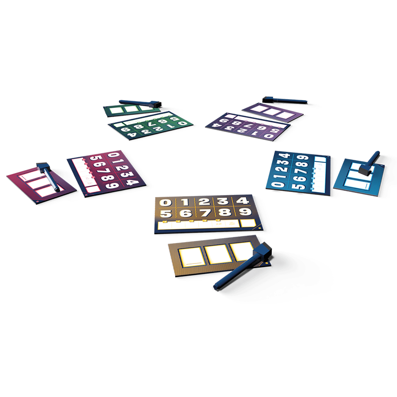 5 marcadores de puntos, 5 marcadores de puntos, 5 rotuladores no permanentes.